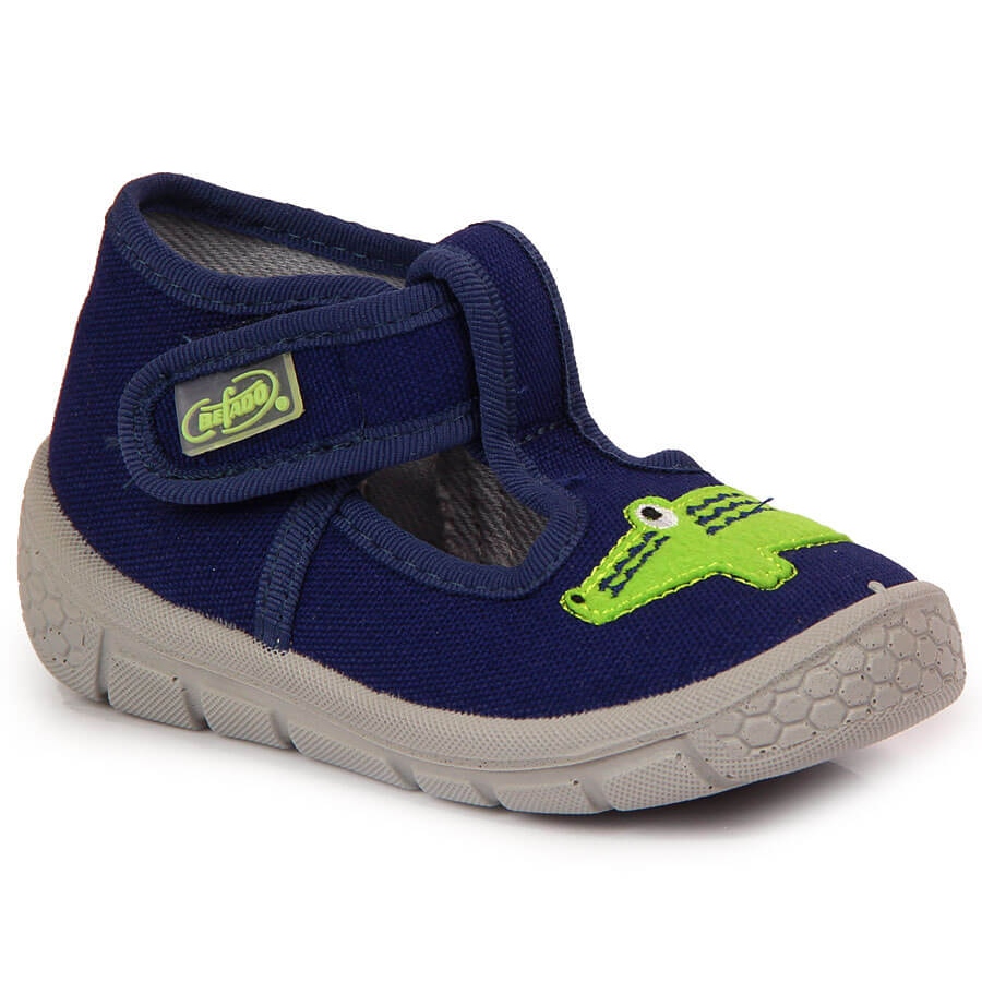Kapcie chłopięce Befado na rzep z aligatorem — granatowe