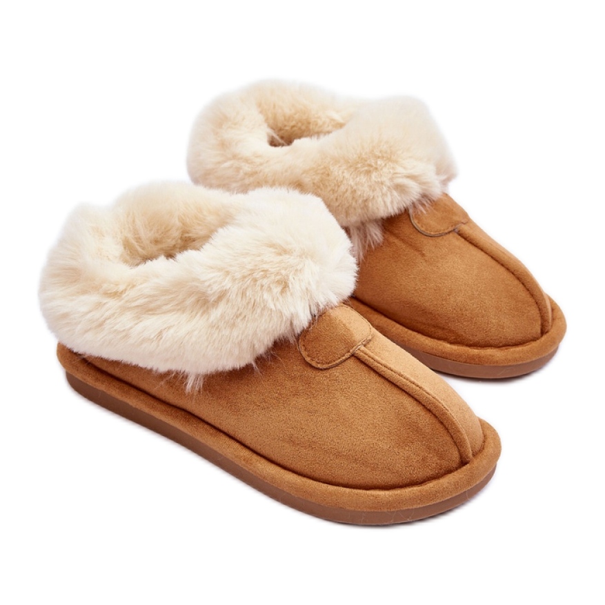 Inna marka Kapcie damskie z futerkiem Camel brązowe