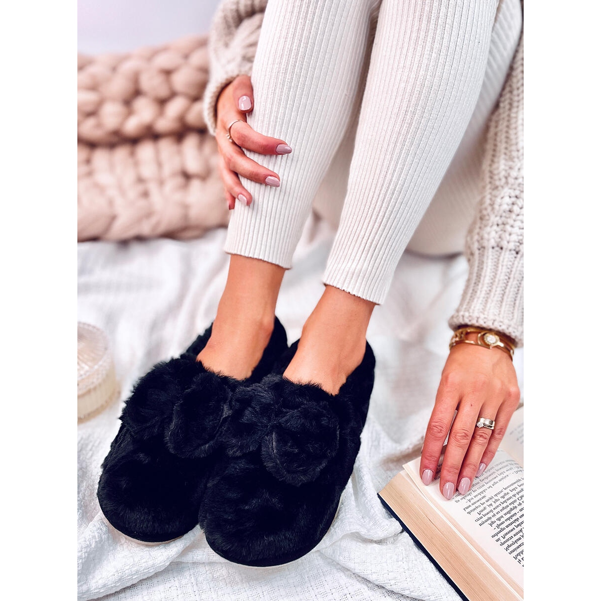Inna marka Kapcie futrzane z kokardką Emres Czarne