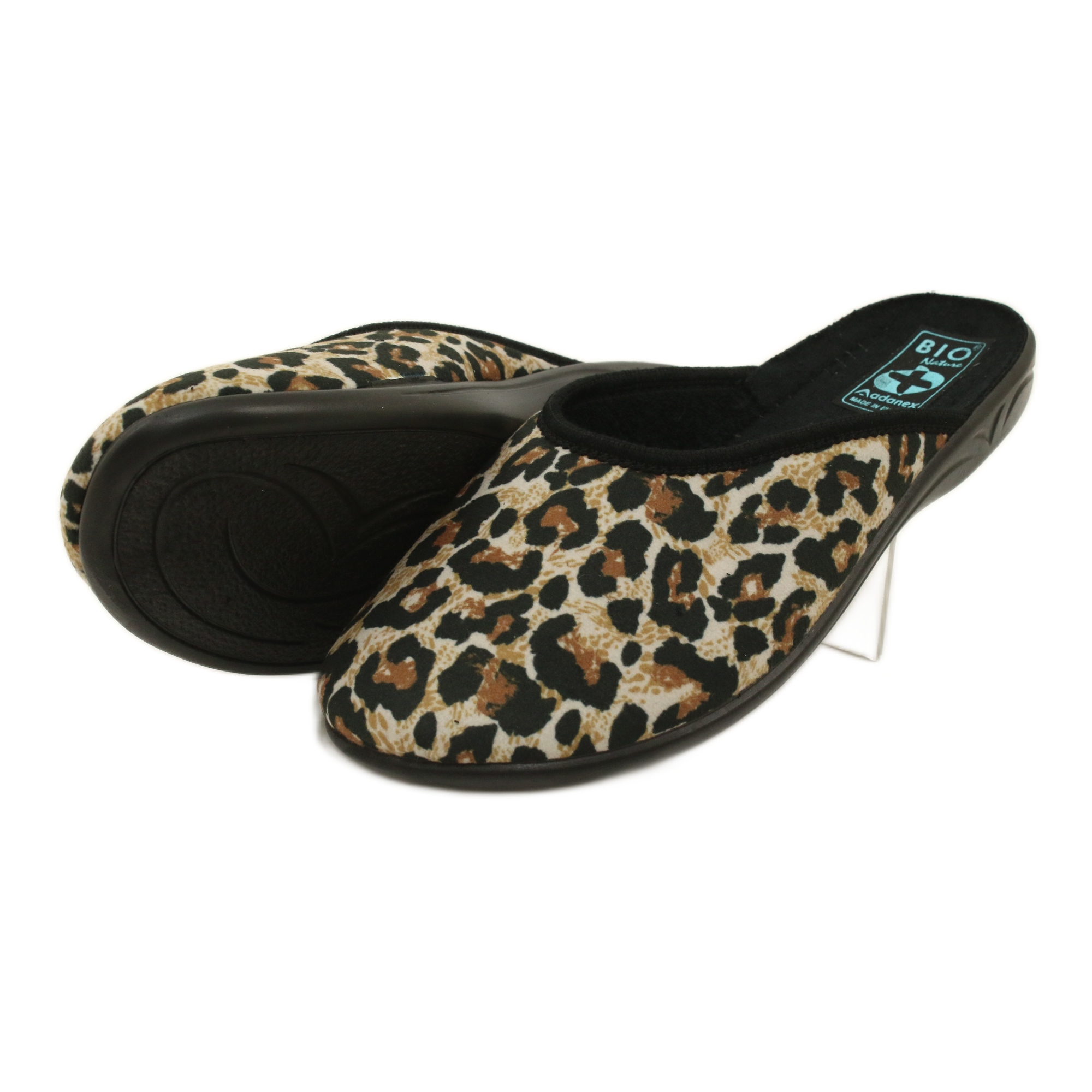 Stylowe i komfortowe kapcie-klapki Adanex w modny wzór panterki — idealne do noszenia w domu. Wykonane z miękkiej, elastycznej tkaniny, wyściełane bawełnianą frotą, zapewniają wygodę i przyjemne uczucie dla stóp. Bardzo elastyczna podeszwa z PU gwarantuje dobrą amortyzację i trwałość, a wsuwany fason ułatwia szybkie zakładanie.