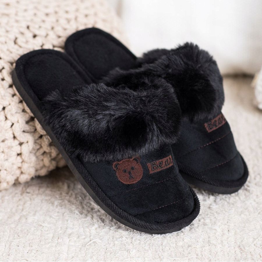 Bona Bona Kapcie Z Futerkiem Bear czarne