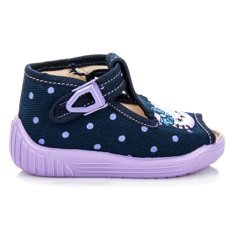 Chociaż niezdobione postaciami z bajek, te niebieskie kapcie z otwartym noskiem są ponadczasowe i uniwersalne, dzięki czemu mogą pasować do każdego rodzaju stroju i być świetnym rozwiązaniem zarówno w przedszkolu, szkole, jak i w domu.