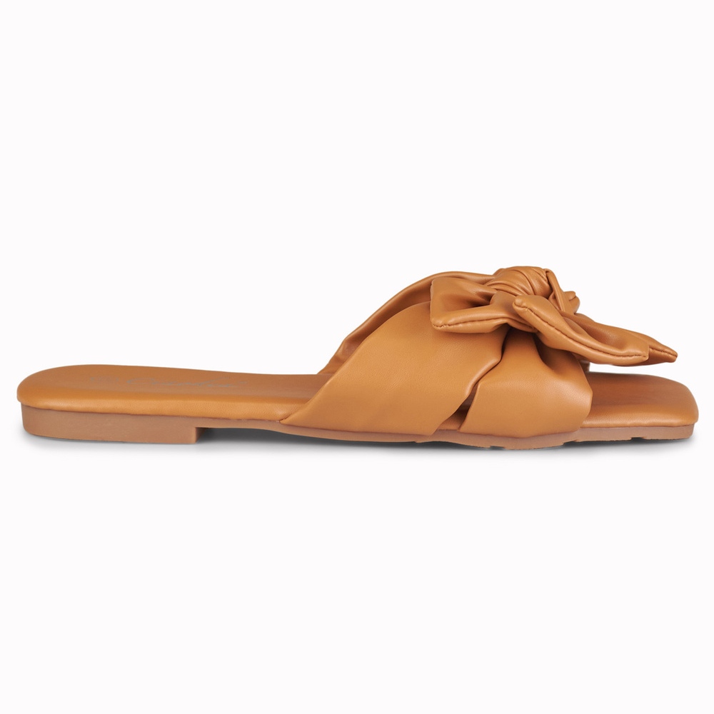 Szczegóły: Karmelowe klapki z kokardą Isanna brązowe