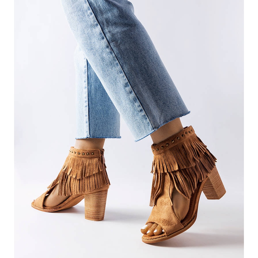 Szczegóły: Karmelowe sandały z frędzlami Latimer brązowe