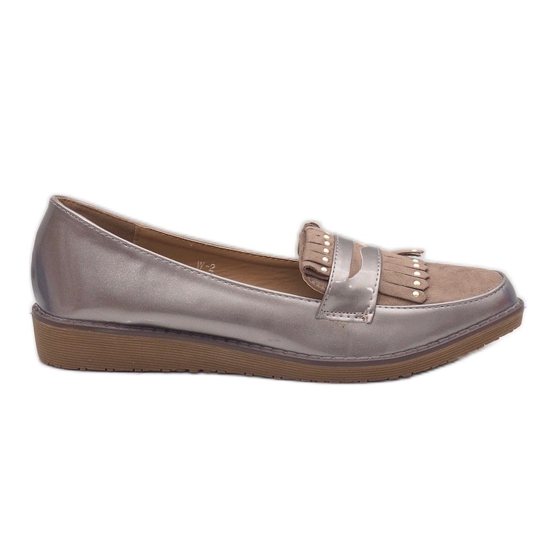 Charakterystycznym elementem cholewki są modne frędzle, które dodają życia każdej stylizacji. Półbuty posiadają okrągły nosek, co sprawia, że są doskonałym wyborem na co dzień, jak i na specjalne okazje. Wsuwany fason ułatwia zakładanie, a koturn o wysokości 3 cm zapewnia odpowiednią wysokość, nie rezygnując przy tym z komfortu.