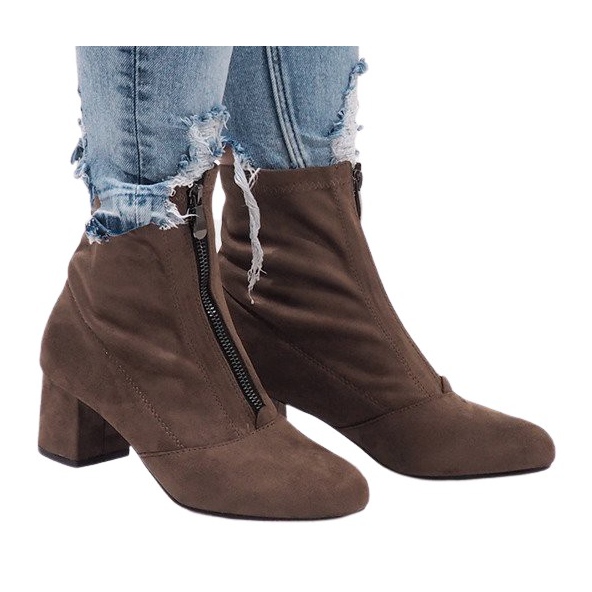Khaki Zamszowe botki z suwakiem FOZ-01 to idealny wybór dla kobiet, które cenią sobie wygodę i styl. Wykonane z wysokiej jakości ekologicznej skóry zamszowej, te botki gwarantują trwałość oraz elegancki wygląd, co czyni je doskonałym uzupełnieniem każdej garderoby.