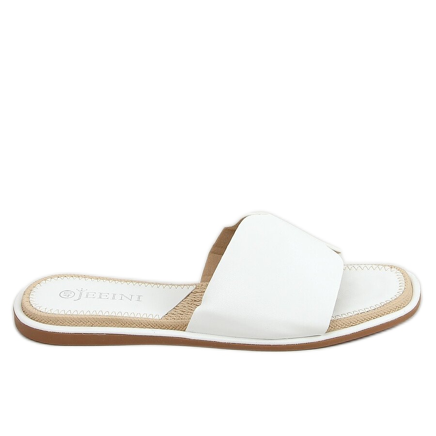 Klapki damskie białe 395 White to idealna propozycja dla kobiet, które cenią sobie elegancję połączoną z wygodą. Wykonane z wysokiej jakości skóry ekologicznej, te licowe klapki na płaskiej podeszwie stanowią doskonały wybór na co dzień. Klasyczny biały kolor oraz szeroki pasek z stylowymi wycięciami sprawiają, że model ten wpasuje się w niemal każdą stylizację, dodając jej świeżości i lekkości.