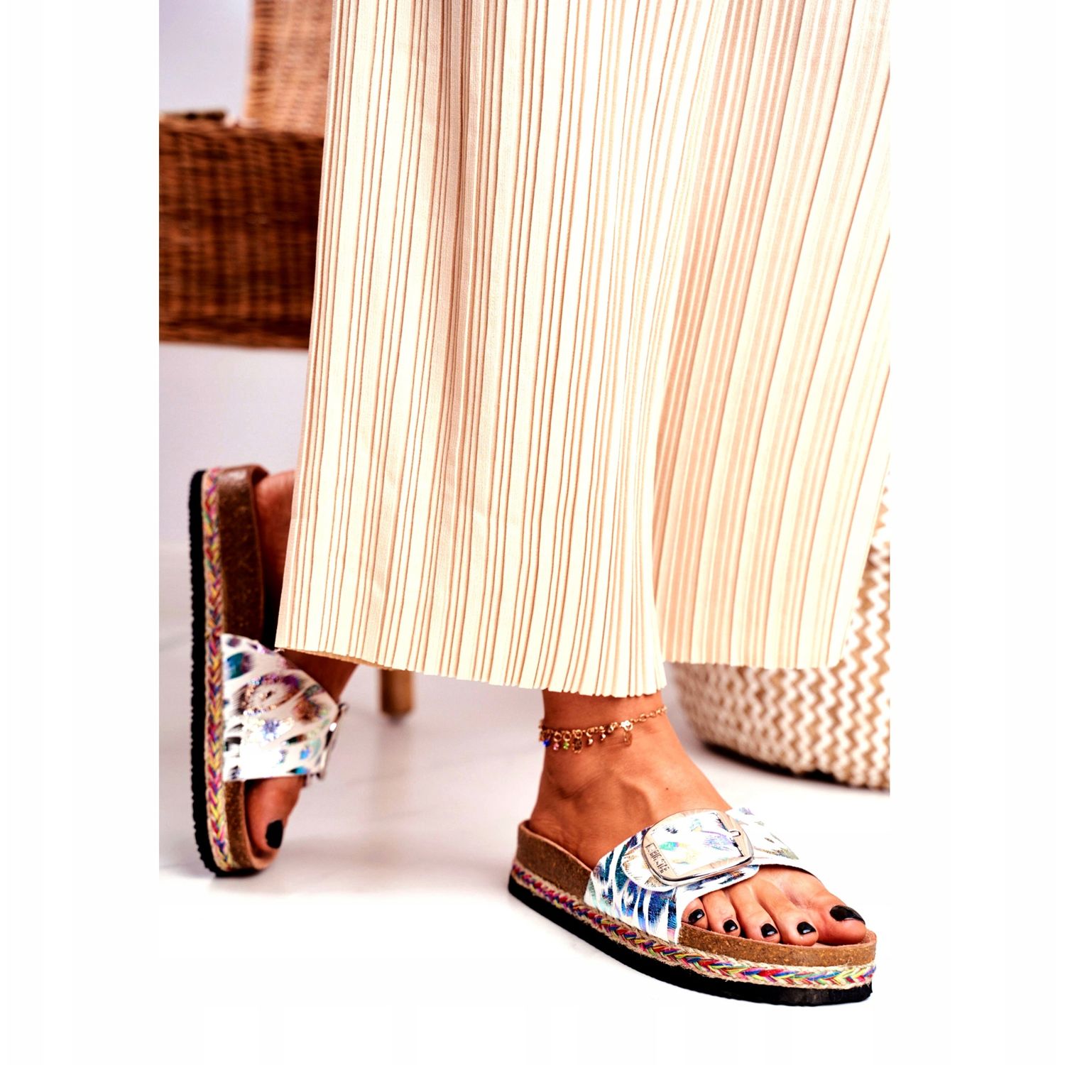 Szczegóły: Klapki Damskie Big Star Metaliczny Wzór DD274127 białe fioletowe srebrny zielone