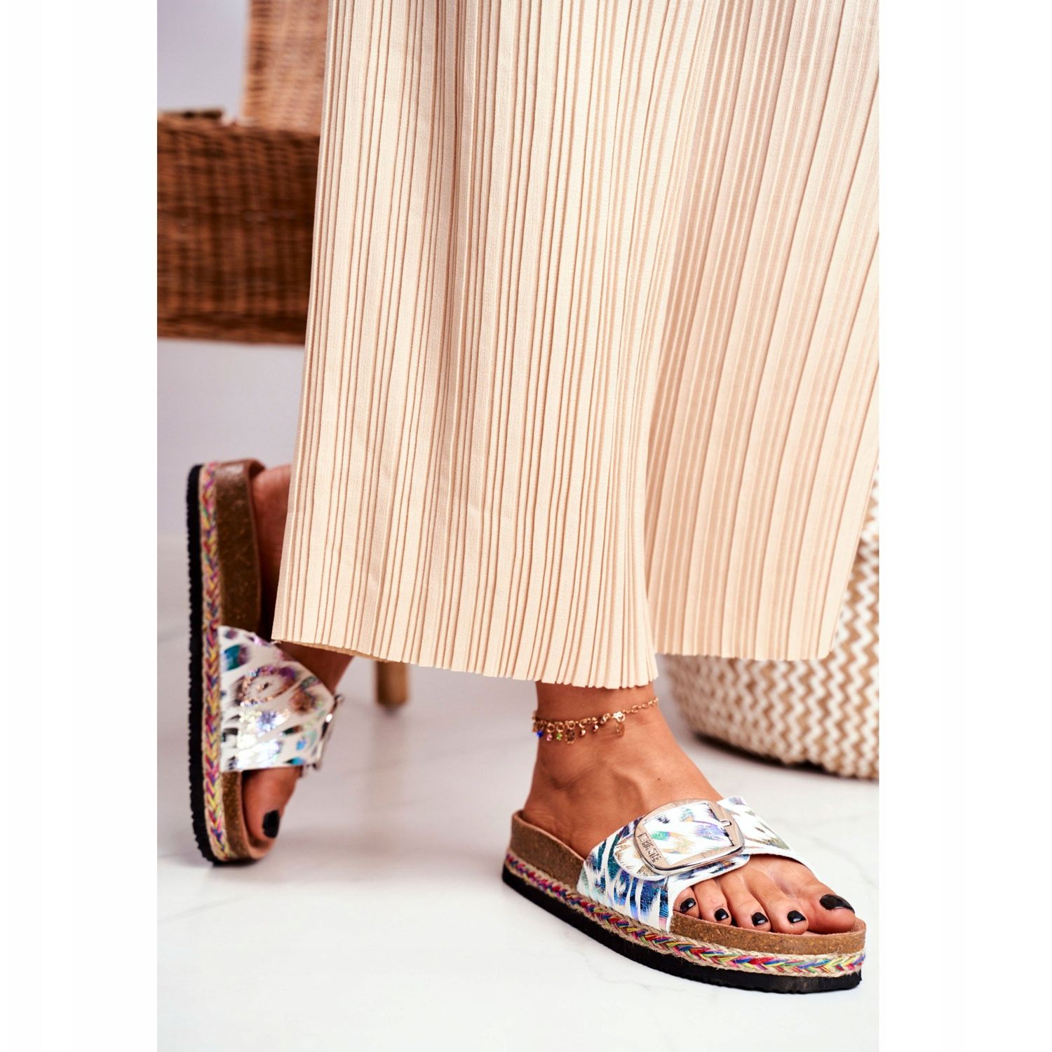 Big Star Klapki Damskie Big Star Metaliczny Wzór DD274127 białe