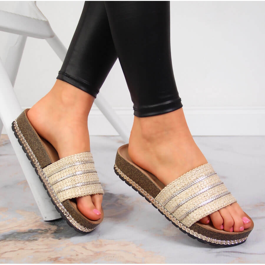Szczegóły: Klapki damskie na platformie beżowe S.Barski beżowy