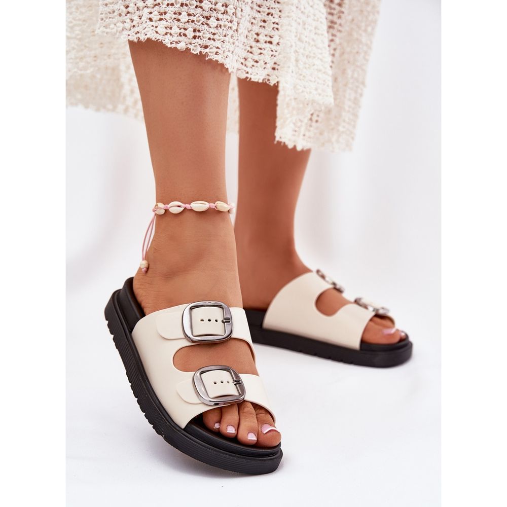 Inna marka Klapki Damskie Z Klamrami Na Platformie Beżowe beżowy