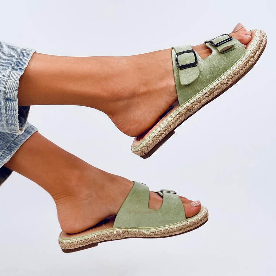 Klapki espadryle Maina Green w odcieniu zielonym to idealny wybór na letnie dni. Wykonane z wysokiej jakości ekologicznego zamszu, zapewniają nie tylko stylowy wygląd, ale również komfort noszenia. Płaska podeszwa, wykończona lnianym sznurkiem, charakterystyczna dla espadryli, dodaje im lekkości i swobodnego stylu.