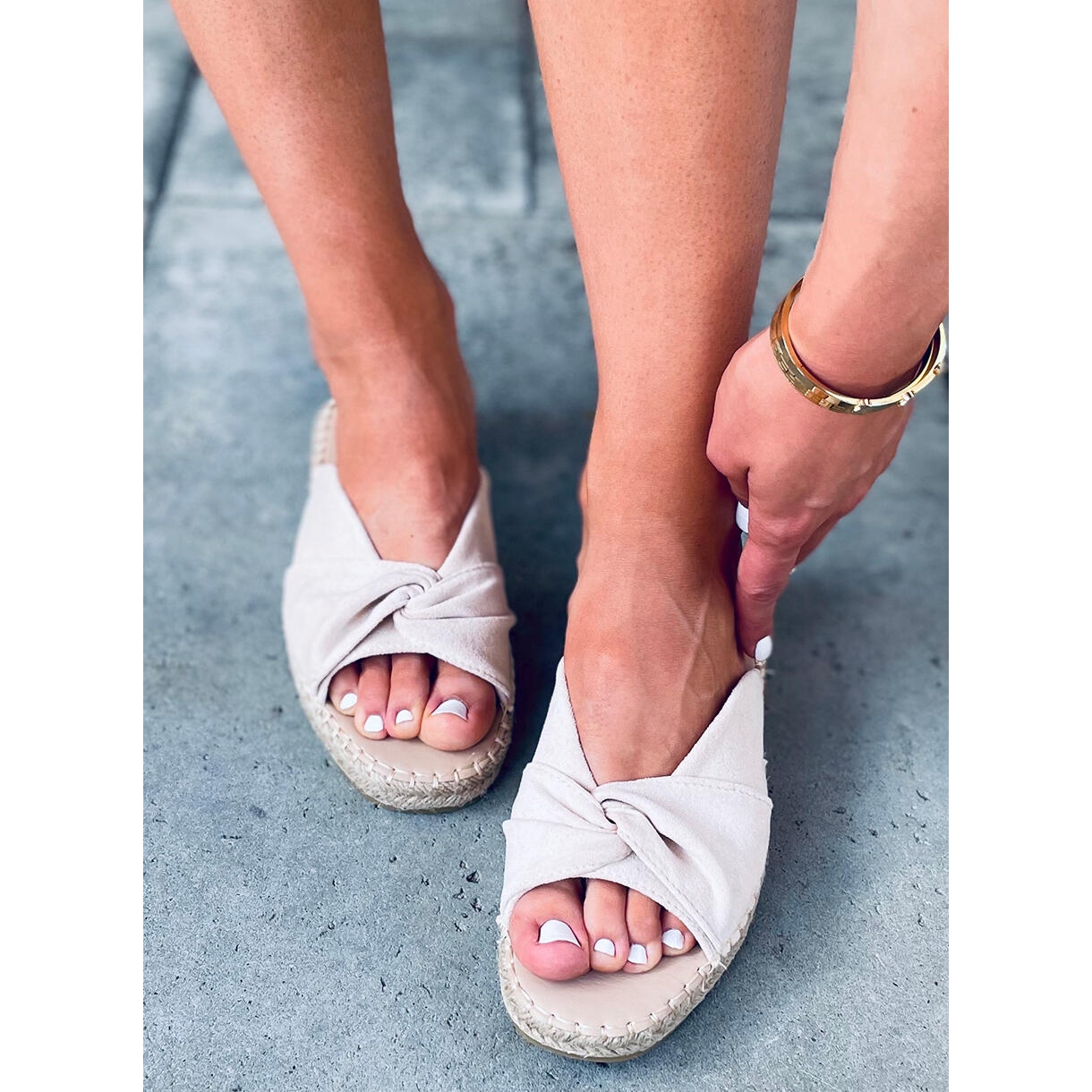 Odkryj niepowtarzalny styl i wygodę z klapkami espadrylami Teit w kolorze beżowym! Te urocze zamszowe klapki damskie to doskonały wybór na letnie dni. Ich wyjątkowa konstrukcja łączy plecioną lnianym sznurkiem podeszewkę z modnym, gładkim wykończeniem, co sprawia, że są one zarówno eleganckie, jak i komfortowe.