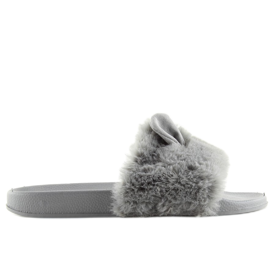 Inna marka Klapki futrzane z uszkami szare LS-02 grey
