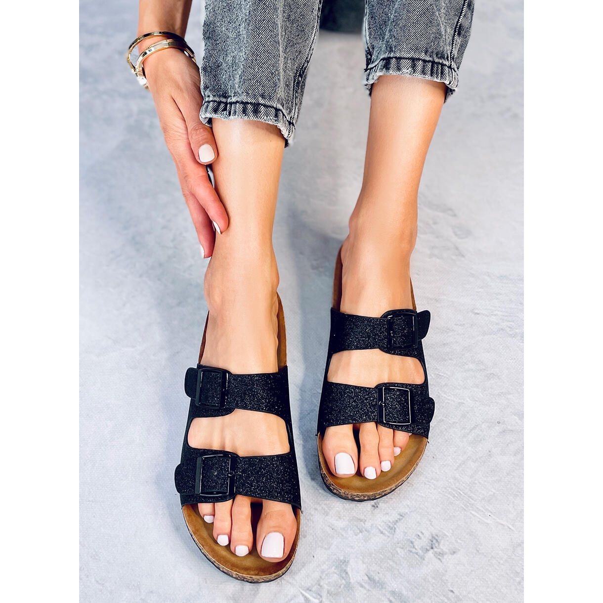 Inna marka Klapki korkowe brokatowe Alexa Black czarne