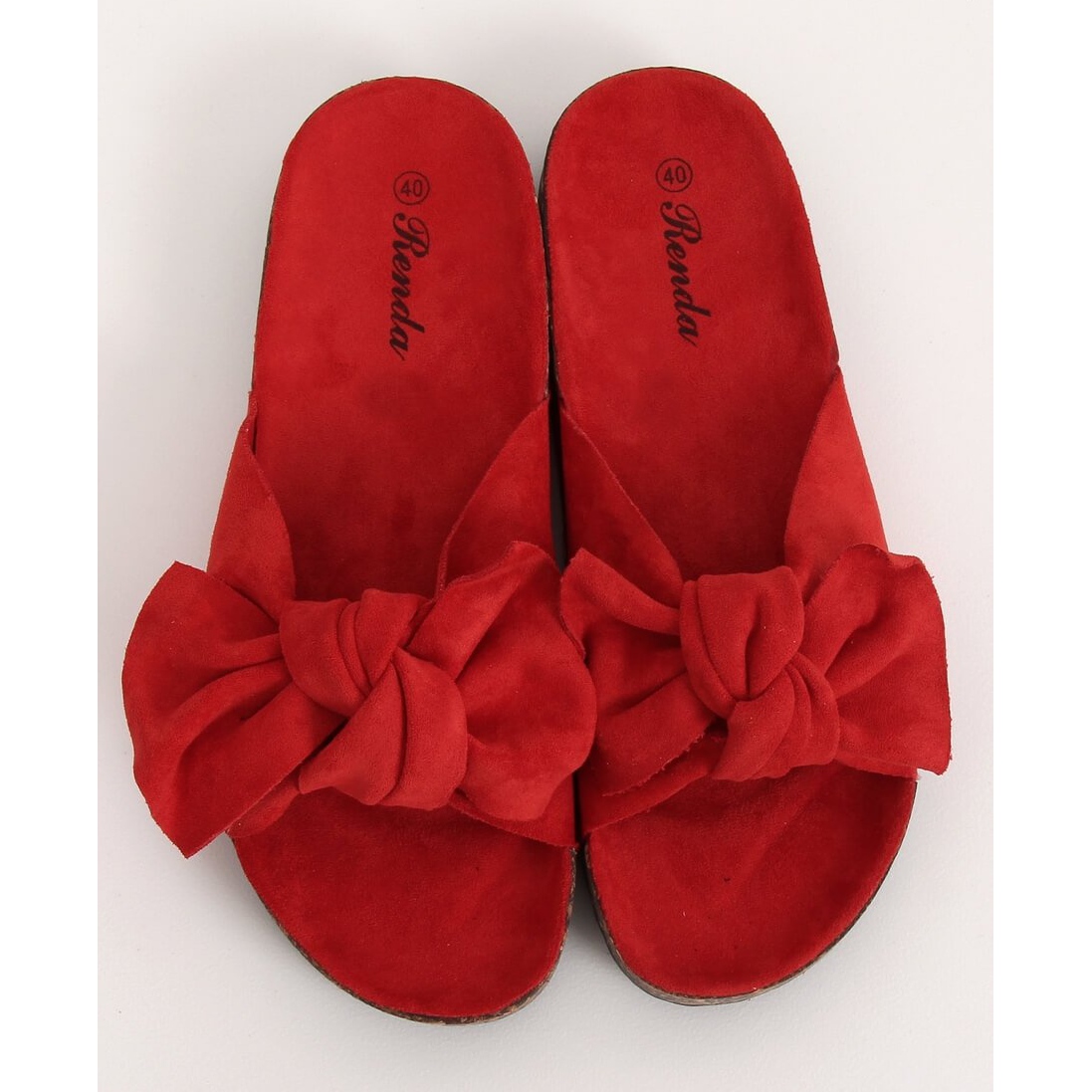 Inna marka Klapki na korkowej podeszwie czerwone 10-218 Red