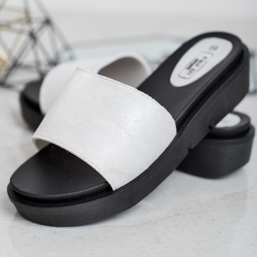 SHELOVET SHELOVET Klapki Na Koturnie białe
