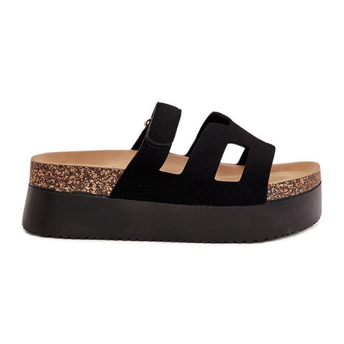 Klapki na masywnej platformie w kolorze czarnym to idealny wybór na ciepłe dni, łączący nowoczesny design z wygodą. Wykonane z eko zamszu, prezentują się stylowo i elegancko, a jednocześnie są przyjazne dla środowiska. Masywna platforma o wysokości 5 cm nie tylko dodaje lekkości, ale również zapewnia stabilność podczas chodzenia.