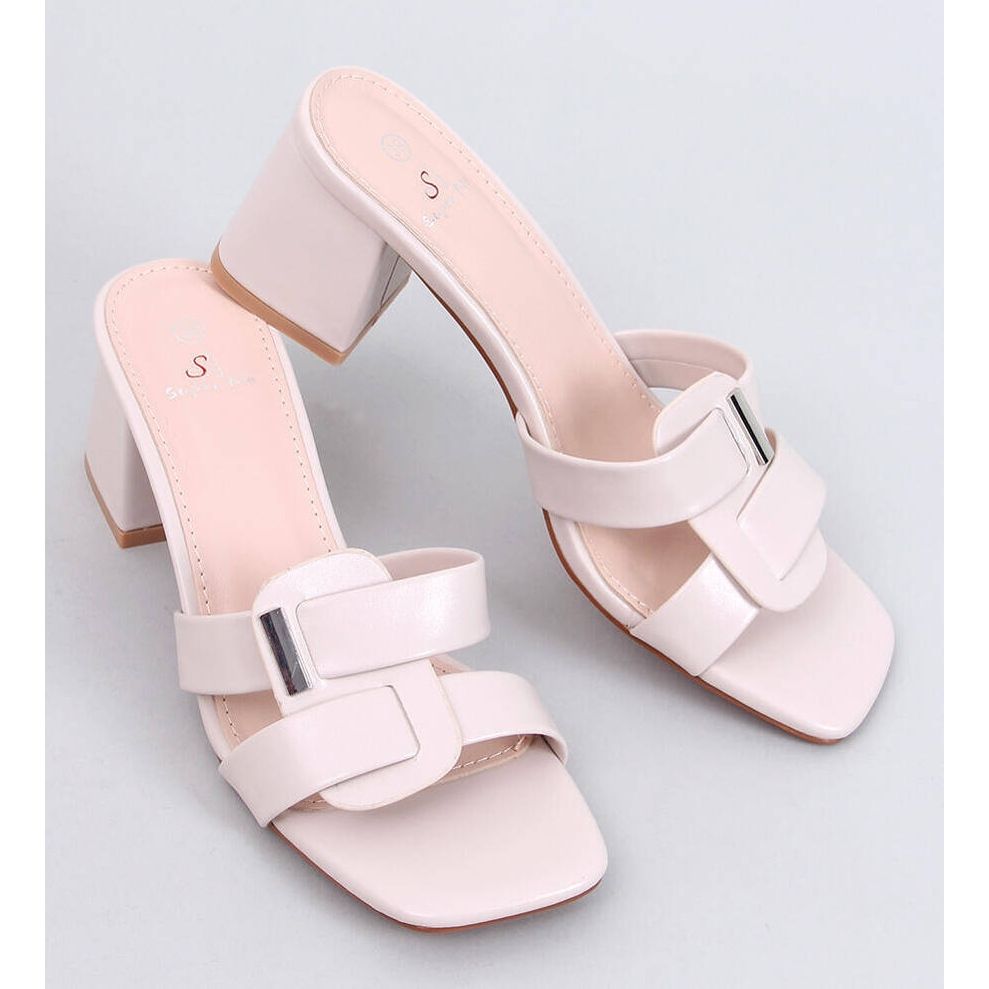 Inna marka Klapki na obcasie eleganckie Lafar Beige beżowy