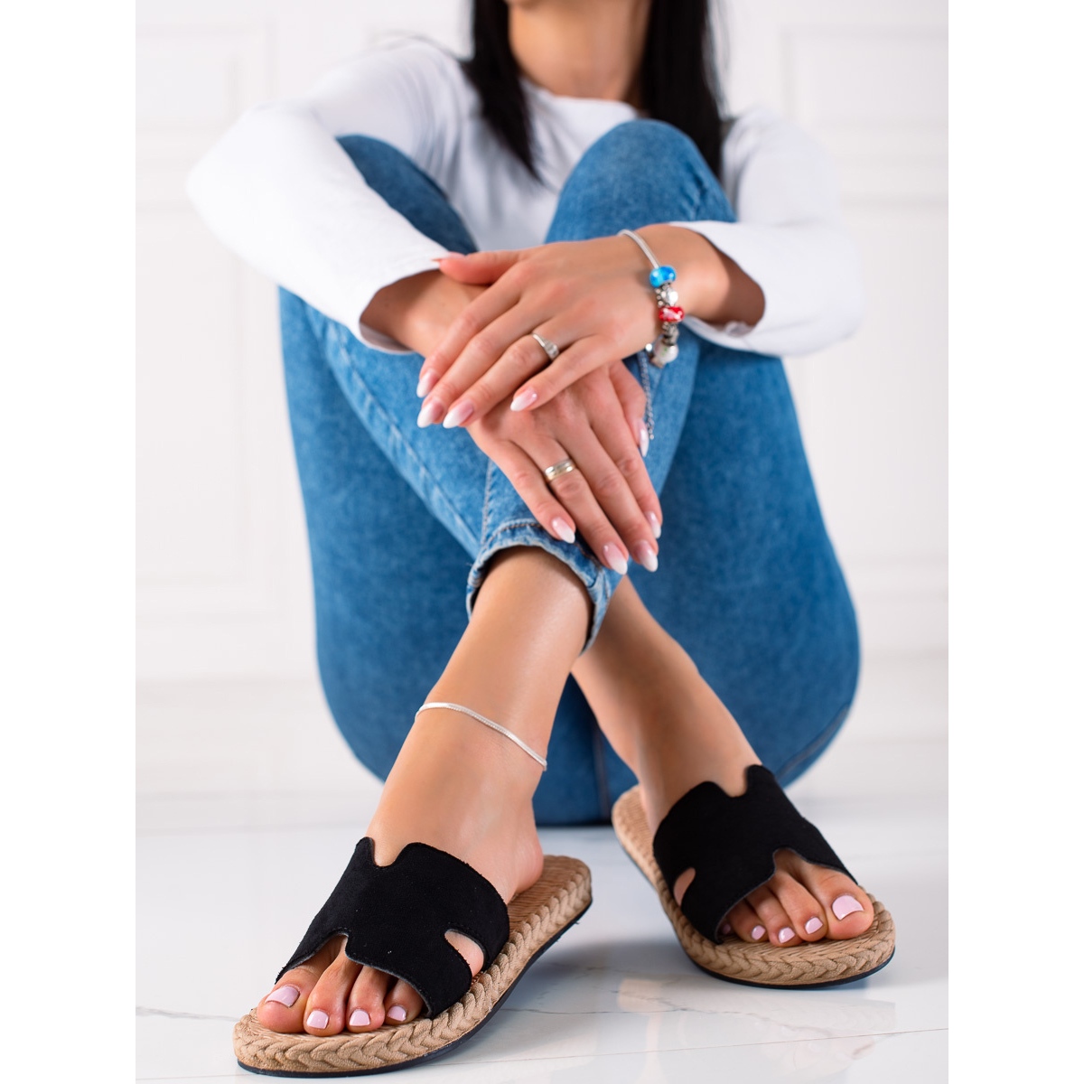 Szczegóły: Klapki na słomkowej podeszwie czarne