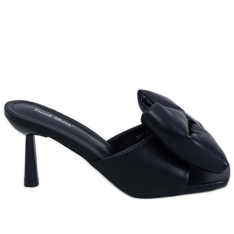 - Model: Klapki na szpilce z kokardą