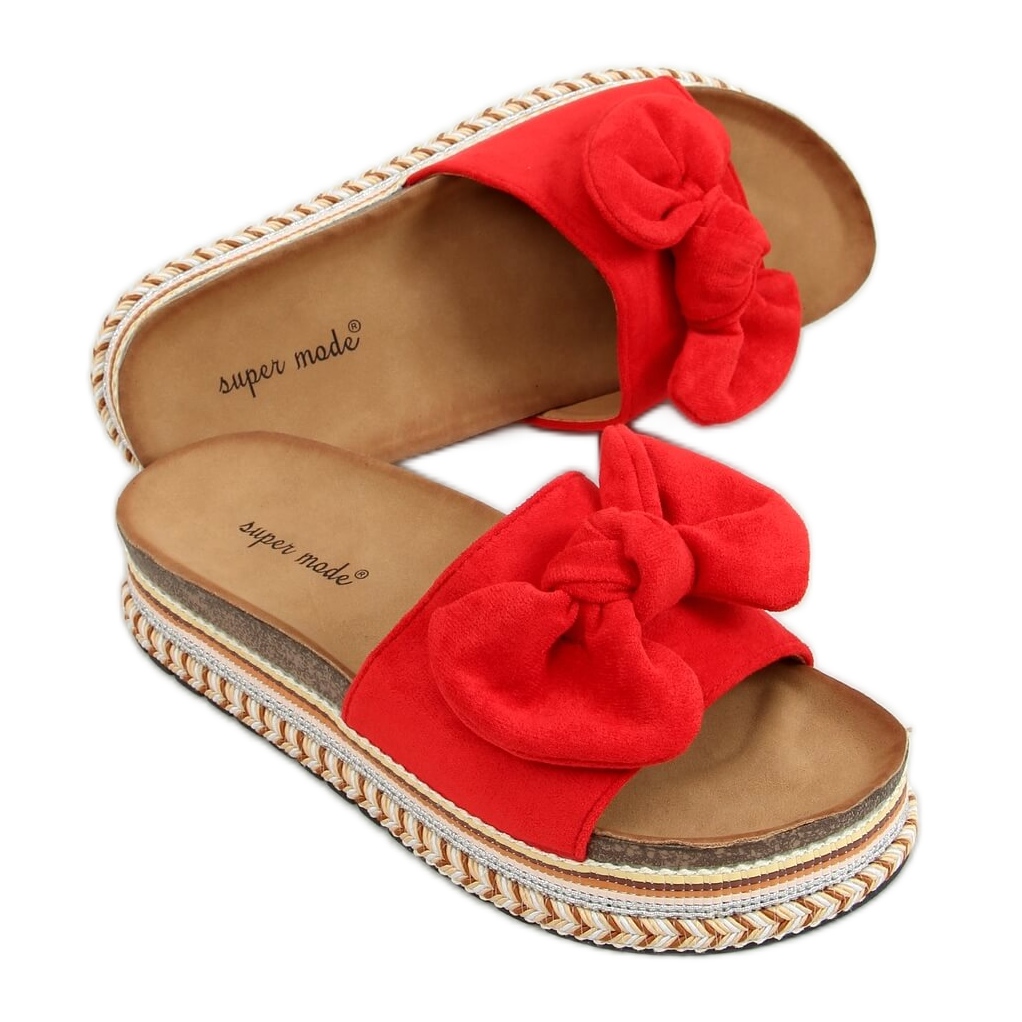 Inna marka Klapki na zdobionej podeszwie czerwone 7705 Red