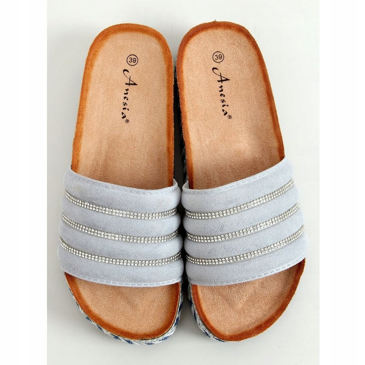 Wykonane z wysokiej jakości ekologicznego zamszu, klapki są nie tylko przyjemne w dotyku, ale również przyjazne dla środowiska. Na ich wysokiej podeszwie umieszczono błyszczące aplikacje z cyrkonii, które dodają elegancji i wyjątkowego charakteru. Profilowana wkładka wewnętrzna gwarantuje komfort noszenia, dzięki czemu możesz cieszyć się każdą chwilą, niezależnie od okazji.