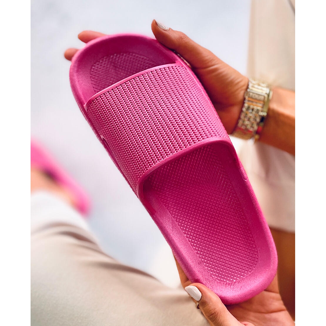 BM Klapki poduszkowe Yang Fuksja różowe staną się nieodłącznym elementem twojej letniej garderoby. Przywiodą myśli o beztroskich wakacjach, dodając odrobinę świeżości i komfortu do twoich letnich dni. Połącz je z szortami, sukienką czy sportowym outfitem – niezależnie od wyboru, zawsze będziesz gotowa do letniej przygody!