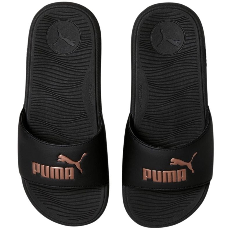 Eleganckie i wygodne klapki damskie Puma Cool Cat 2.0 w kolorze czarnym z złotymi akcentami. Idealne na lato — na plażę, basen i do codziennego noszenia. Połączenie prostego stylu z technologią Softfoam+ zapewnia komfort przez cały dzień.