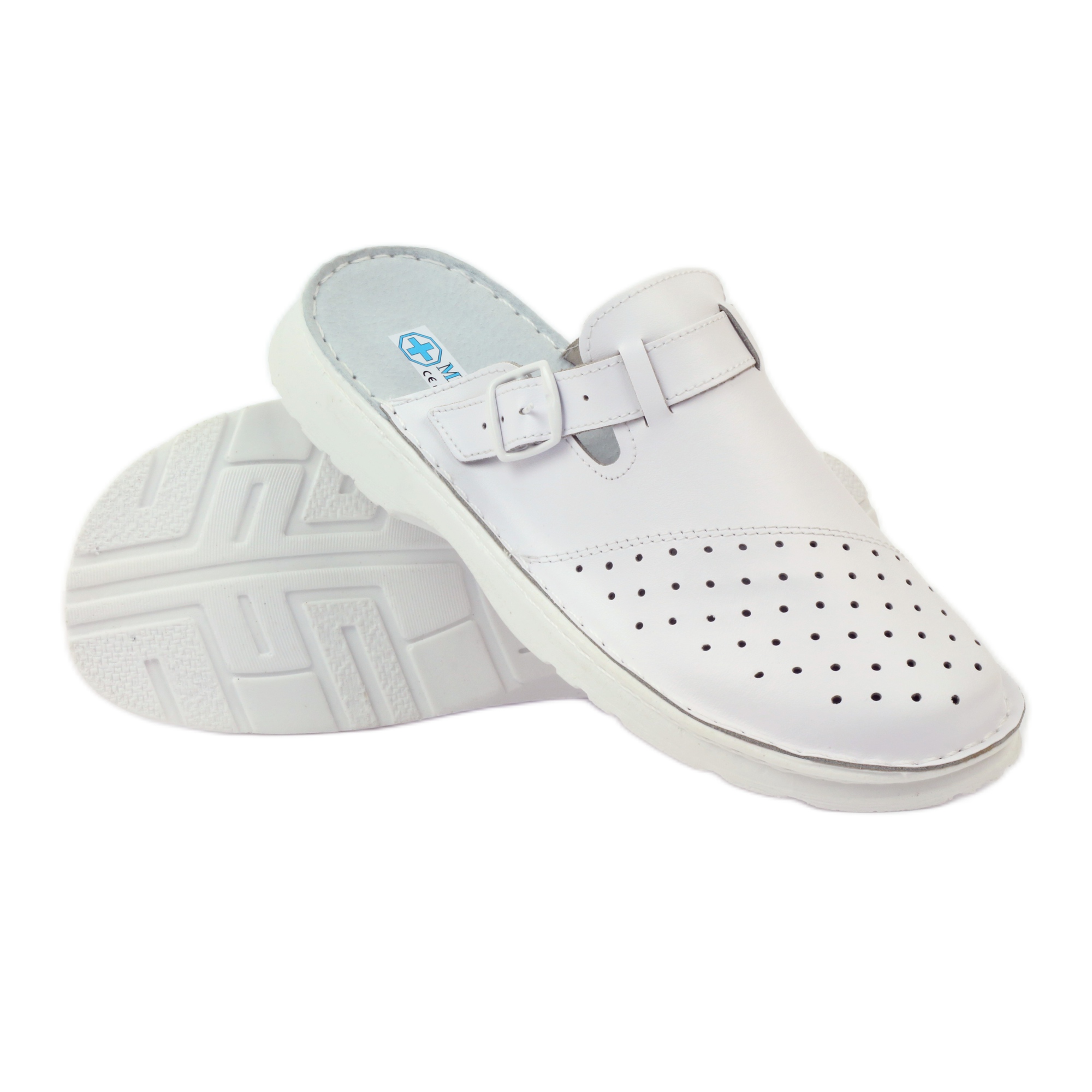 Oferujemy Klapki Sandały Medyczne 1055 w eleganckim kolorze białym, które nie tylko świetnie się prezentują, ale również zapewniają komfort i wsparcie dla stóp. Wykonane z wysokiej jakości naturalnej skóry licowej, te klapki łączą styl z funkcjonalnością, co czyni je idealnym wyborem dla personelu medycznego oraz osób ceniących sobie wygodę na co dzień.