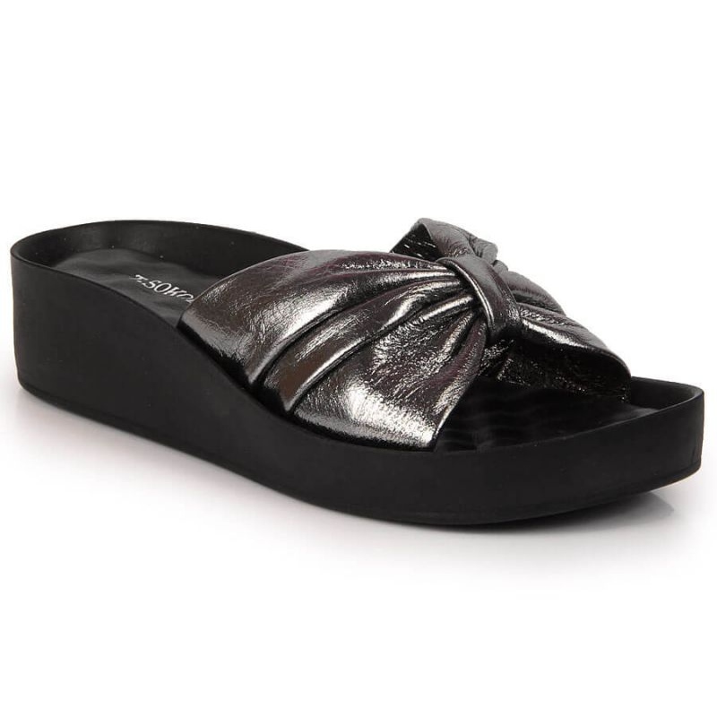 Szczegóły: Klapki skórzane na koturnie T.Sokolski W SCA162B srebrne srebrny