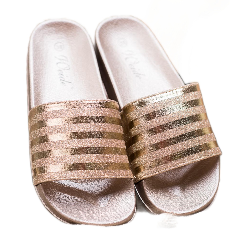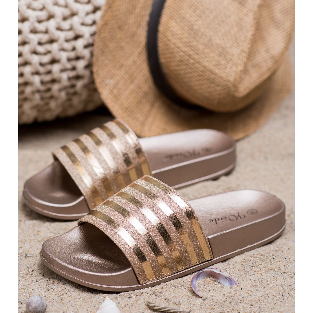 Szczegóły: Weide Klapki Z Brokatem żółte