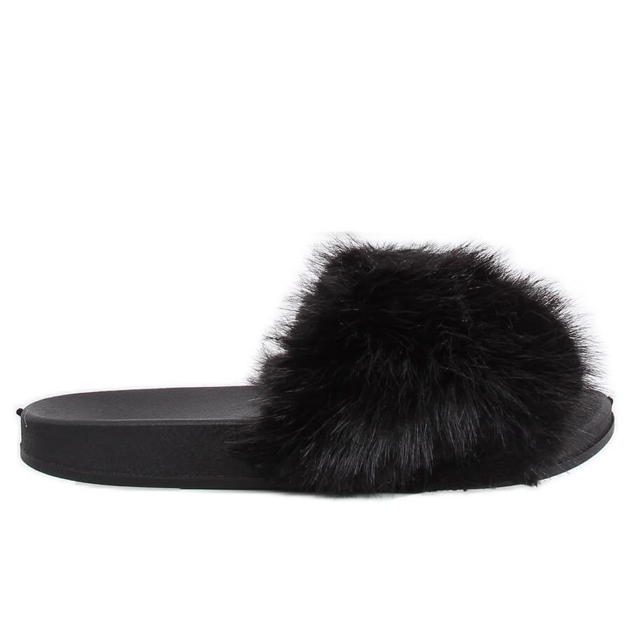 Inna marka Klapki z futerkiem czarne CK107P Black