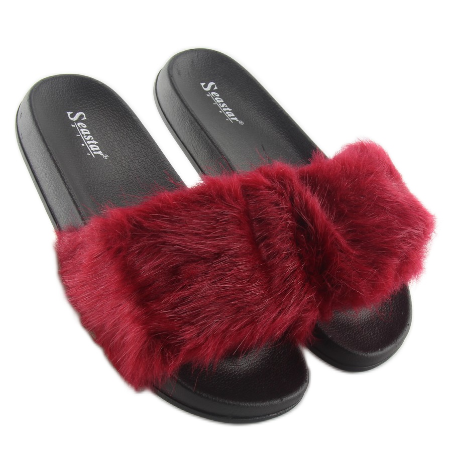 Szczegóły: Klapki z futerkiem dd69p wine czerwone
