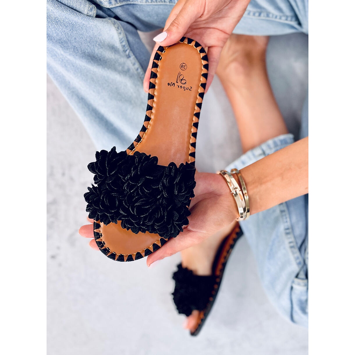 Szczegóły: Klapki z kwiatami Prima Black czarne