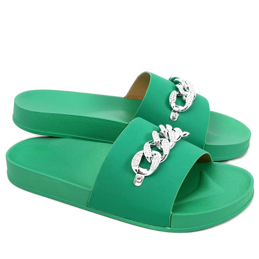 Inna marka Klapki z łańcuchem Tilia Green zielone