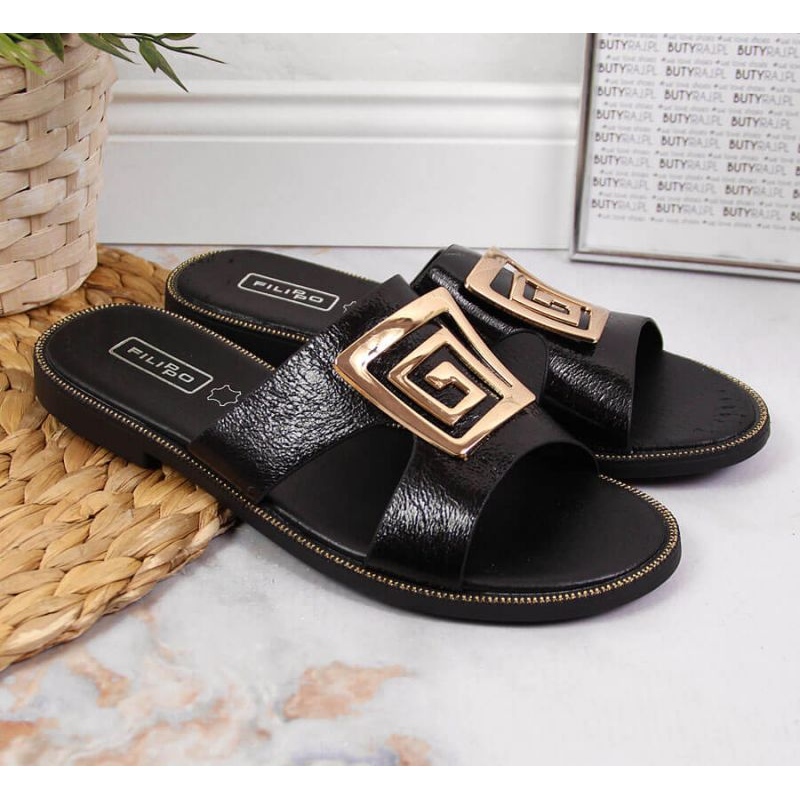 Szczegóły: Klapki z ozdobą czarne W Filippo