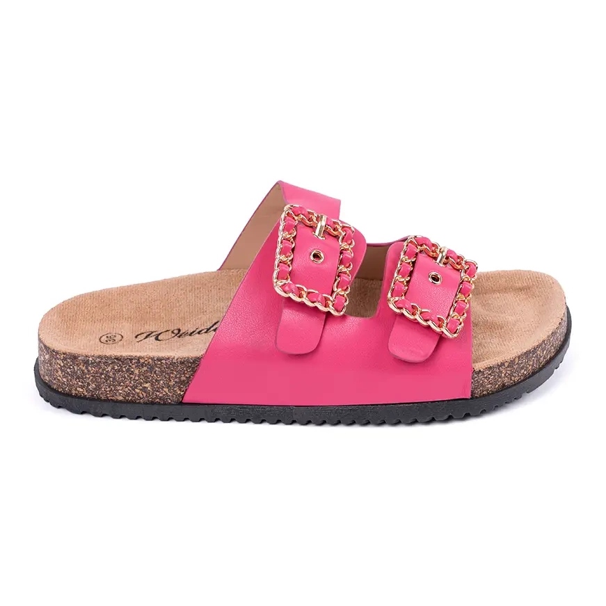 Eleganckie, a zarazem wygodne klapki damskie o klasycznym, casualowym kroju. Model „Klapki Z Ozdobnymi Klamrami” w odcieniu Pink sprawdzi się jako uniwersalny dodatek do letnich stylizacji — od spacerów po mieście po codzienne wyjścia na zakupy.