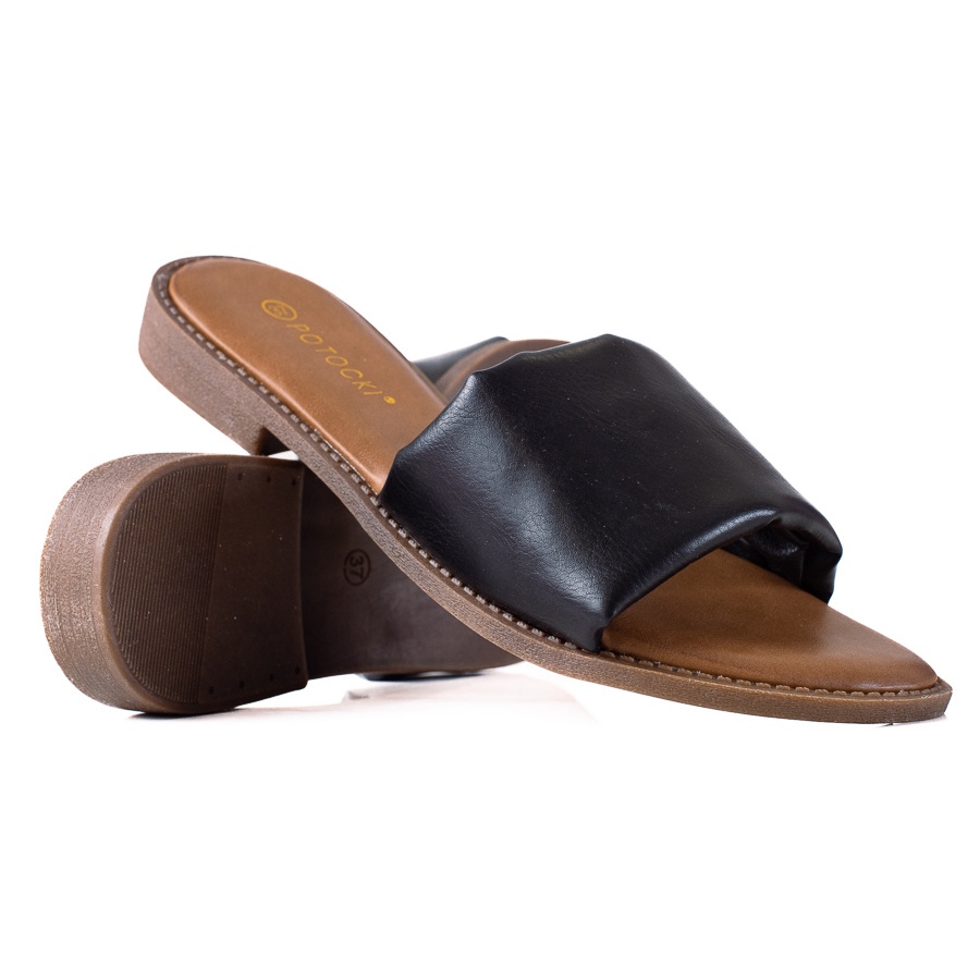 Szczegóły: W. Potocki Klapki z szerokim paskiem Potocki czarne