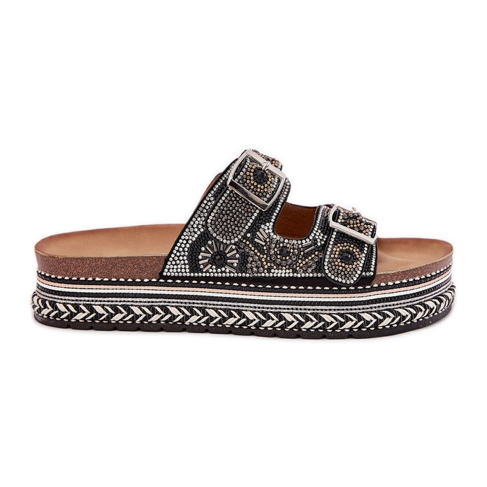 Inna marka Klapki Ze Zdobieniem I Klamrami Na Platformie Czarne