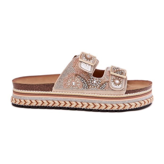 Inna marka Klapki Ze Zdobieniem I Klamrami Na Platformie Złote złoty