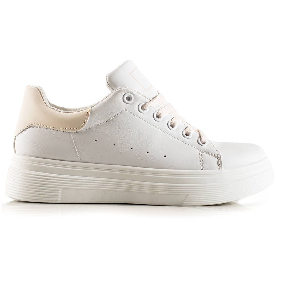 Sneakersy Ideal Shoes to model o platformie wysokości 4 cm, co dodaje nieco wzrostu, a jednocześnie zachowuje komfort użytkowania. Ich uniwersalny biały kolor sprawia, że będą pasować do wielu stylizacji – zarówno tych sportowych, jak i codziennych.