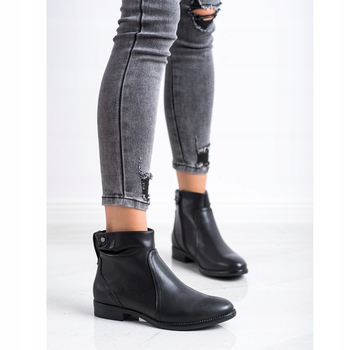Zamykane na zamek, Klasyczne Czarne Botki Sergio Leone to perfekcyjne połączenie komfortu i nowoczesnego designu. Wybierz te buty do casualowych outfitów, aby dodać im wyjątkowego charakteru. Idealne na codzienne wyjścia, spotkania ze znajomymi czy spacery po miejskich ulicach, sprawdzą się w każdej sytuacji. Nie czekaj – postaw na jakość i wyjątkowy styl z botkami Sergio Leone!