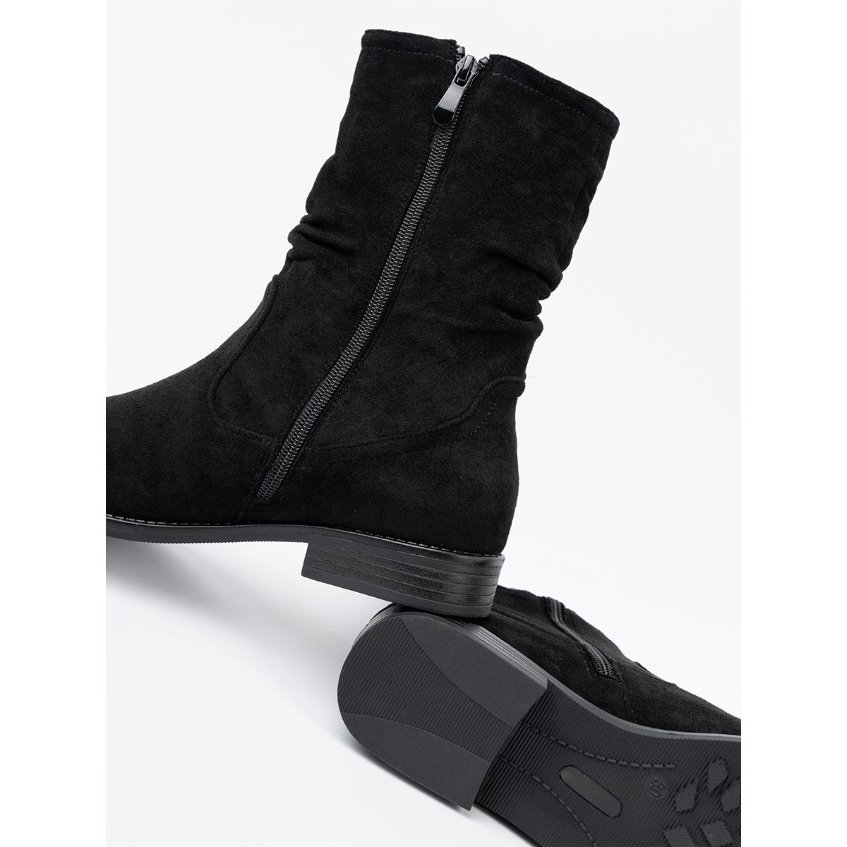 Szczegóły: Shelvt Klasyczne czarne botki z marszczoną cholewką