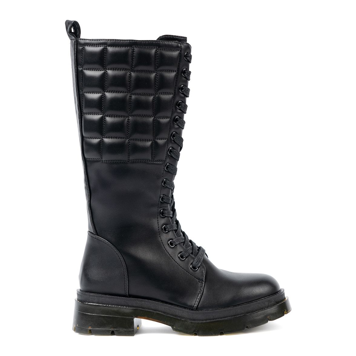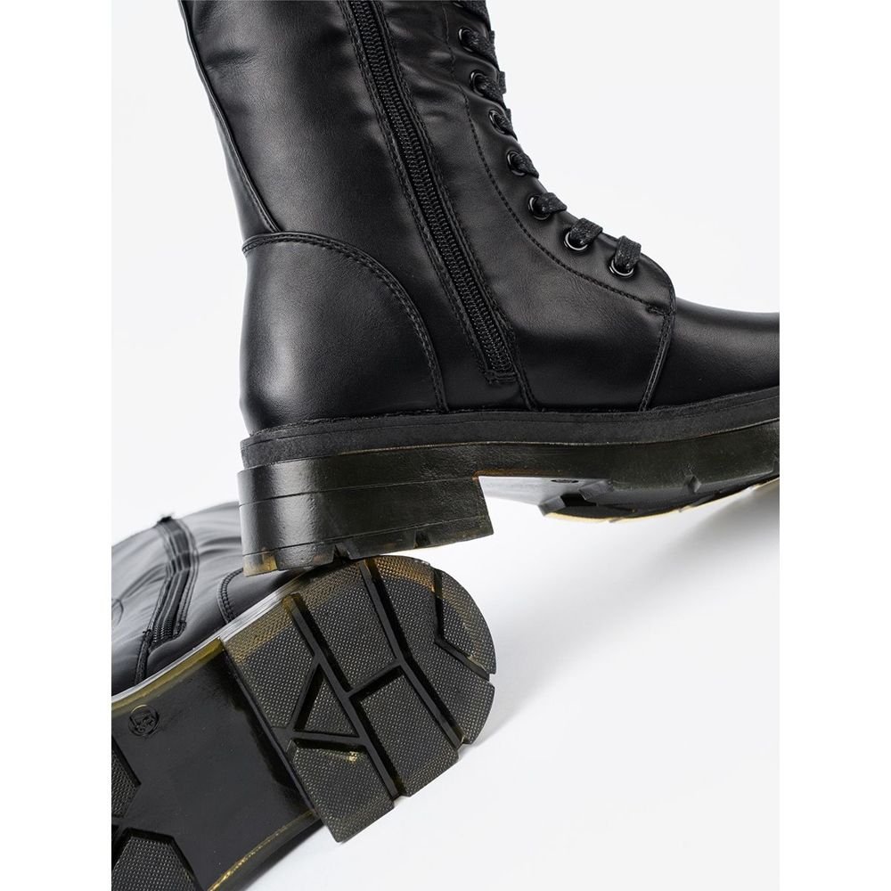 Shelvt Shelvt Klasyczne czarne kozaki z sznurowaniem i suwakiem