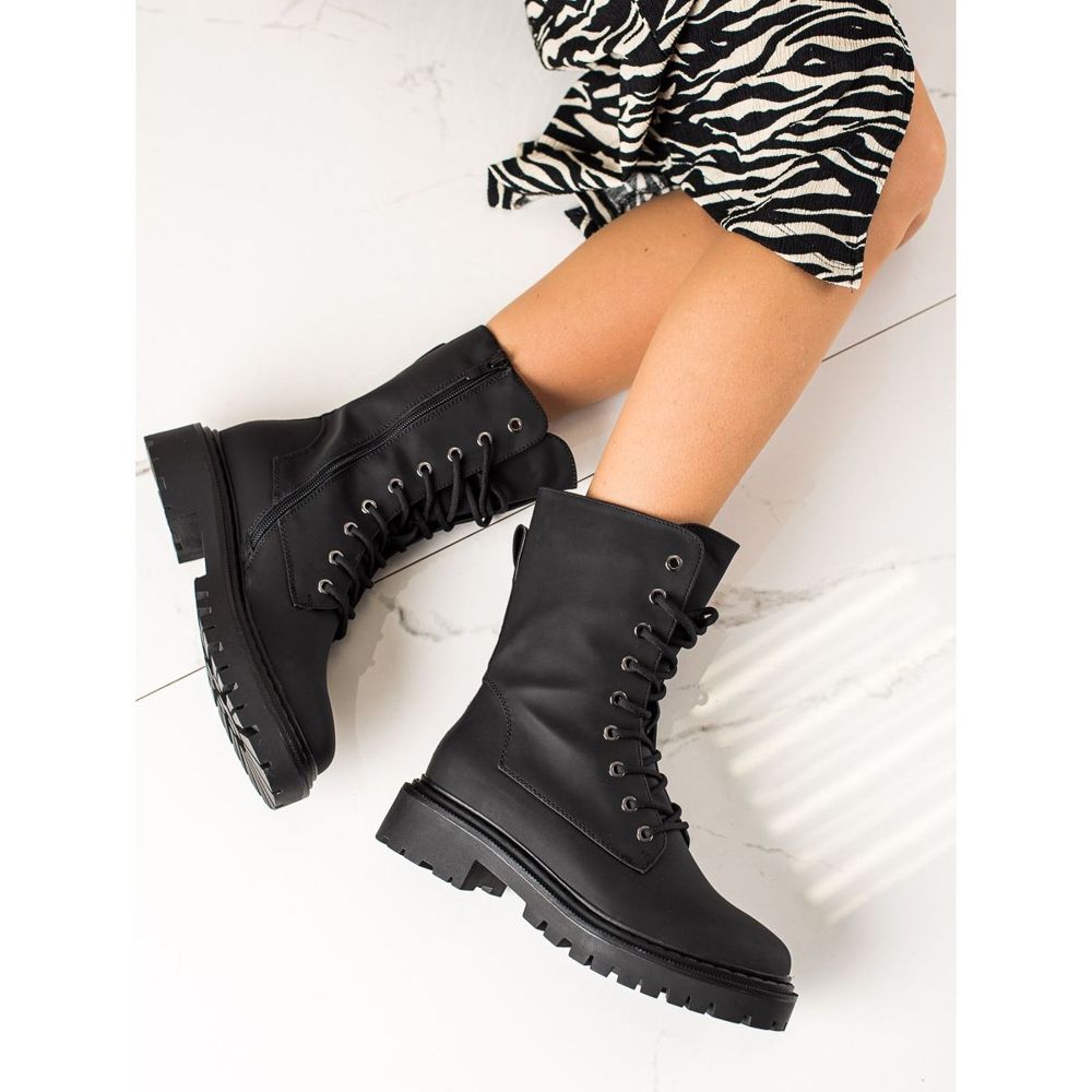 Szczegóły: Erynn Klasyczne Czarne Sznurowane Workery