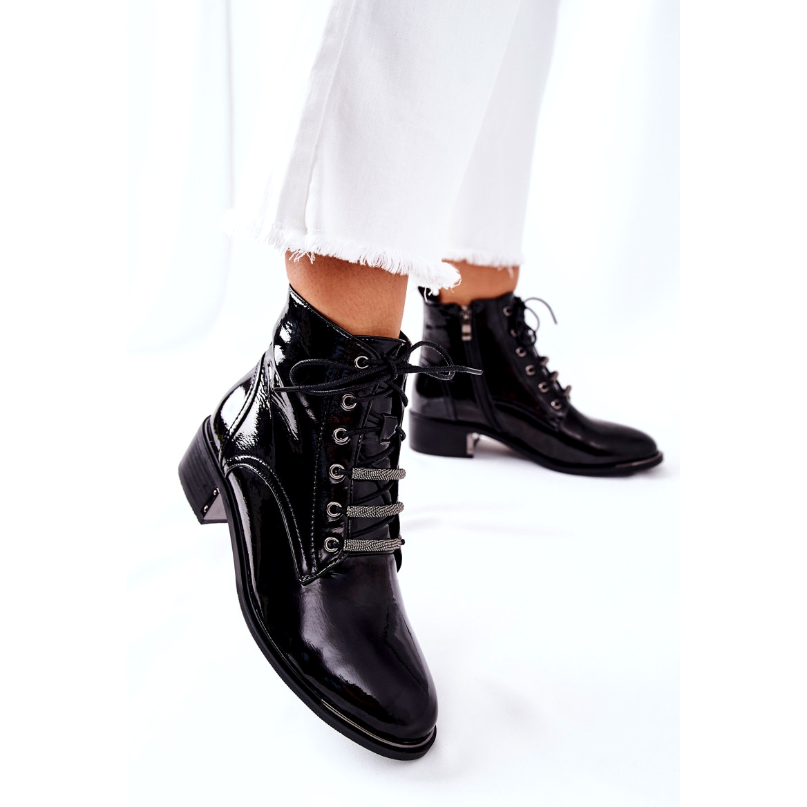 D&A D&A Klasyczne Damskie Ocieplane Botki Lakierowane Czarne Reflection