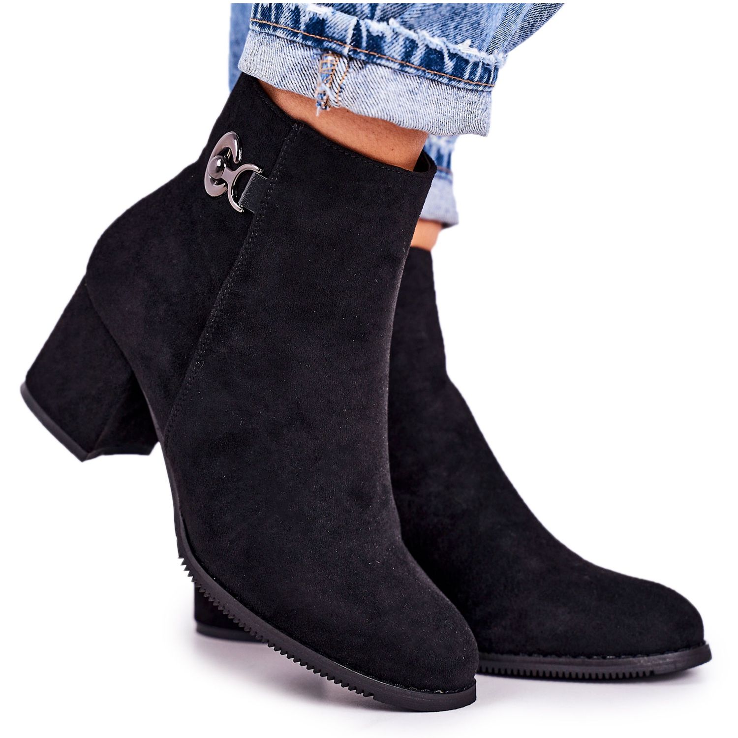 PJ1 PJ1 Klasyczne Damskie Ocieplane Botki Na Słupku Czarne Success