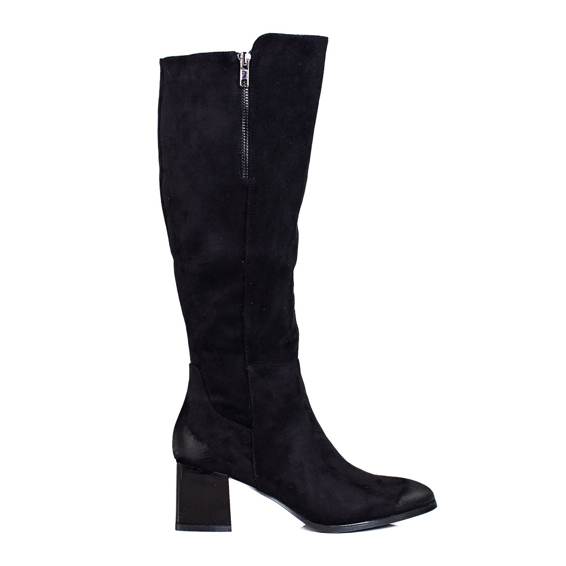 **Klasyczne Kozaki Damskie na Słupku Potocki - Czarne**