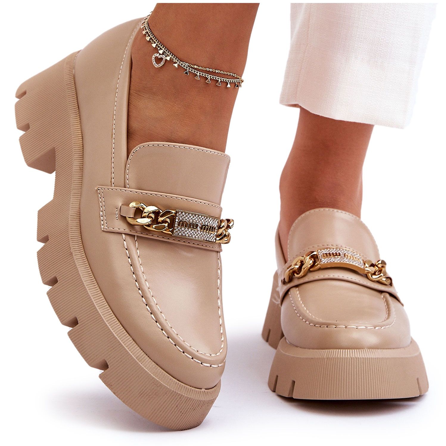 Szczegóły: PS1 Klasyczne Mokasyny Na Masywnej Platformie Beżowe Catch Me! beżowy